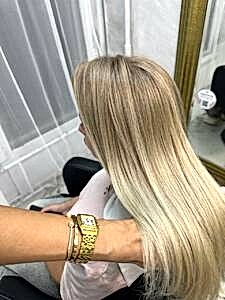 - Окрашивание. От деликатного Pin-Up и AirTouch до сложных растяжек цвета и блондирования. Используются составы без аммиака, с кератином и маслами, которые сохраняют гладкость кутикулы.